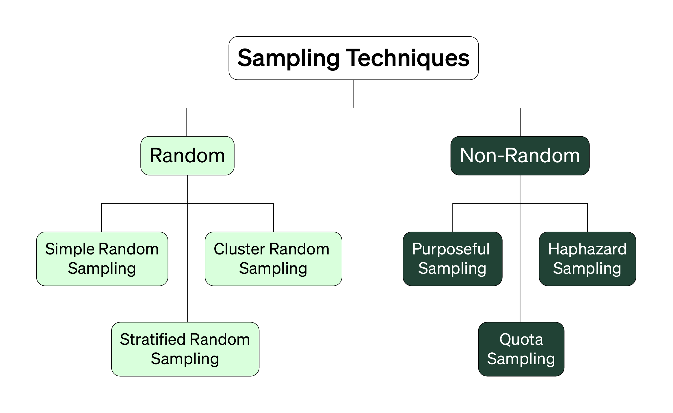 You use a sampling technique to select a portion of your sampling frame for every study you run. There are two groups of sampling techniques: those that are random and those that are non-random. Check out Topic 3 and 4 in this handbook for more to learn more about when to use each.
